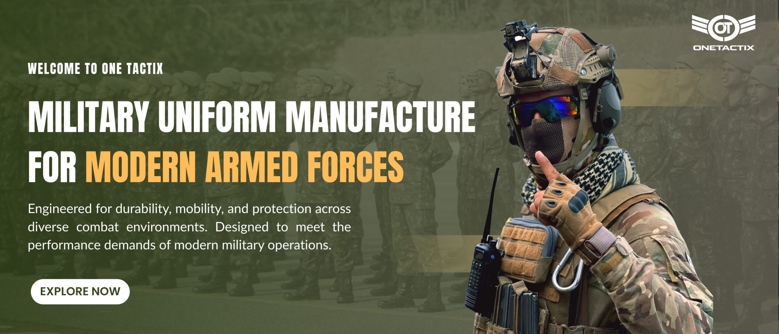 One Tactix delivers advanced military, police, and tactical apparel designed to meet the evolving demands of modern operations. Our product range supports defense and security forces with performance-focused uniforms, protective gear, and essential accessories developed for durability, mobility, and reliability in challenging environments.